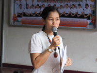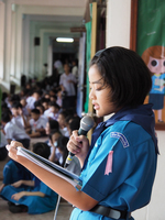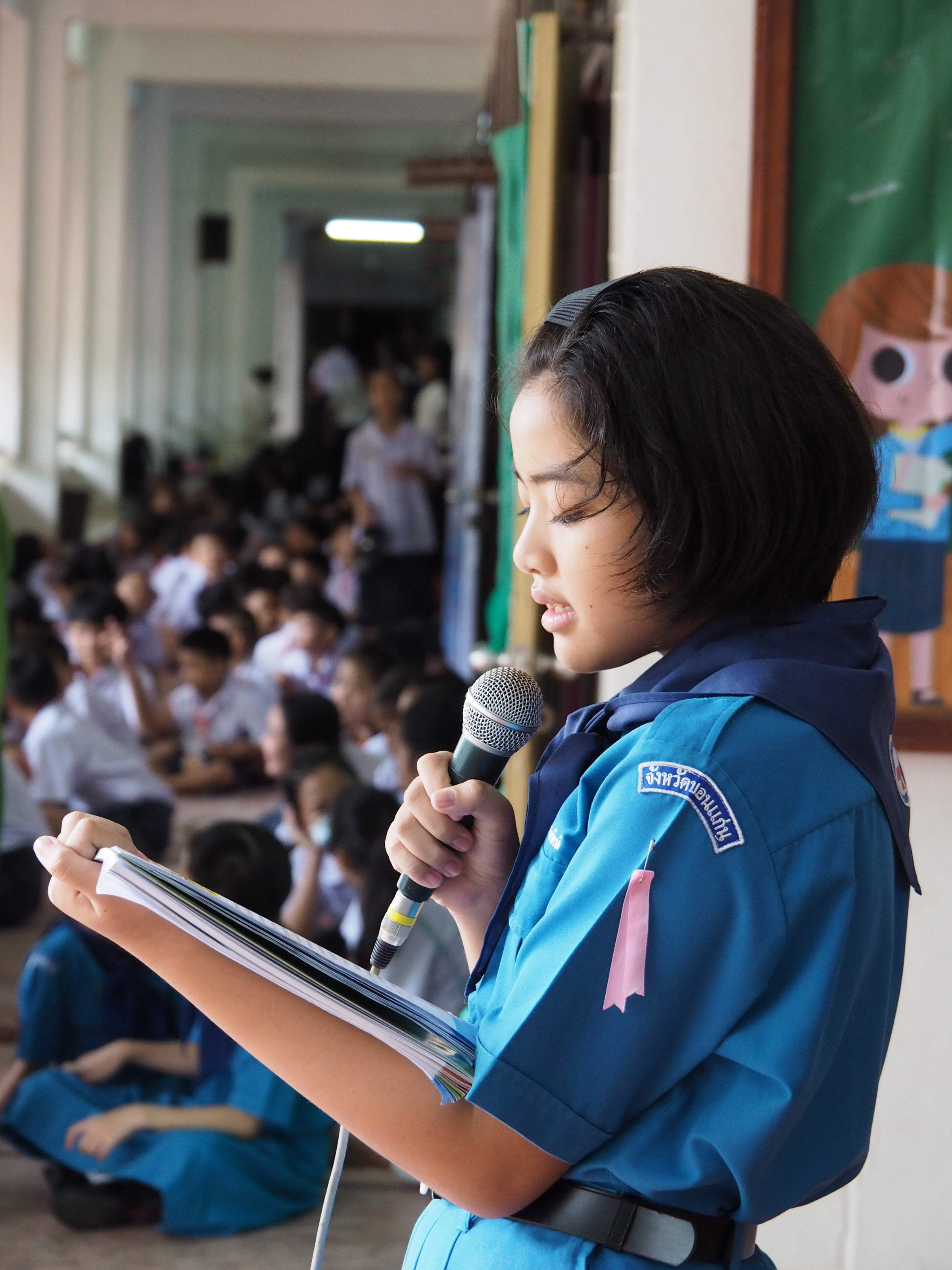 การกล่าวสุนทรพจน์ในหัวข้อ “ภาษาไทย ภาษาชาติ” โดยเด็กหญิงทรงพรชนก น้อมในธรรม นักเรียนระดับชั้นประถมศึกษาปีที่6/3